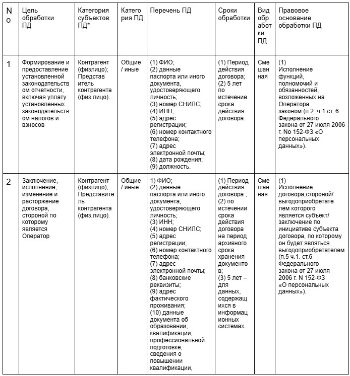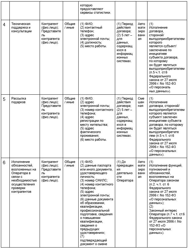 (2) сроков действия договоров с субъектами ПД и/или согласий субъектов ПД на обработку их ПД;