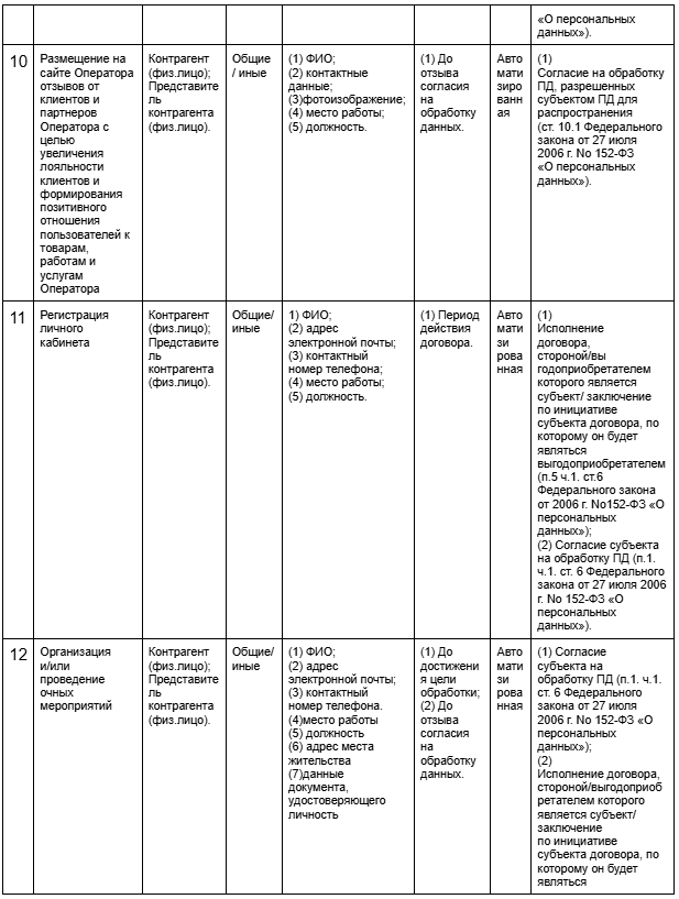 в) Фактический состав привлекаемых Оператором третьих лиц к обработке ПД определяется исходя из сложившихся отношений между Оператором и субъектом ПД, а также в соответствии с положениями применимого законодательства, договоров между Оператором и субъектом ПД, согласия(ий) субъекта ПД на обработку ПД.