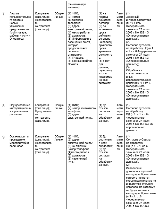 3.2.9. Обработка ПД для каждой цели обработки, указанной в настоящей Политике, осуществляется путем: